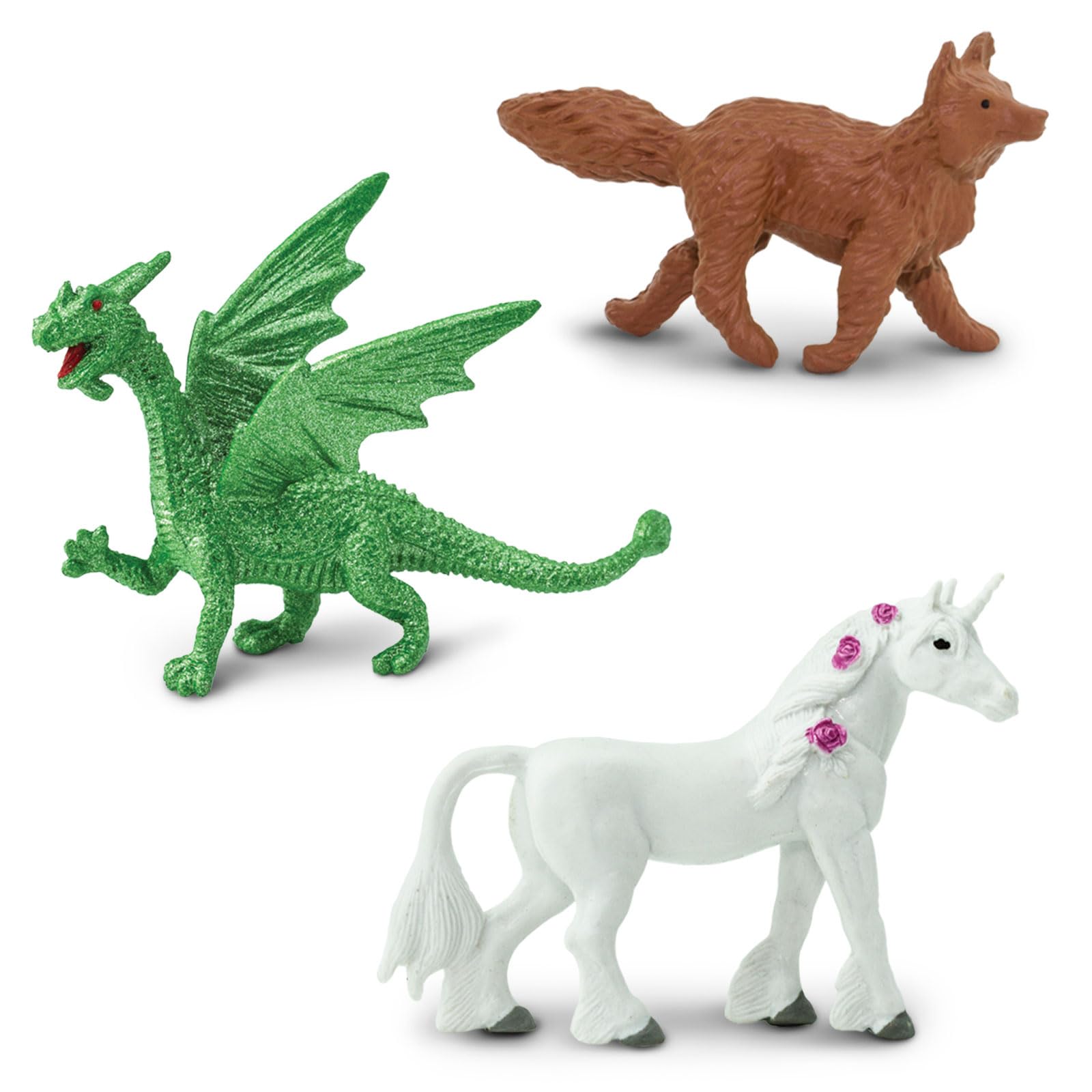 - FANTASY MEETS REALITY: This Toob combines the wonder of fairy tales with the realism of nature, featuring an enchanting assortment of 11 creatures both real and imaginary including a unicorn, dragon, frog, wolf, rabbit, doe, white stallion, bear, mouse, bluebird, and fox.