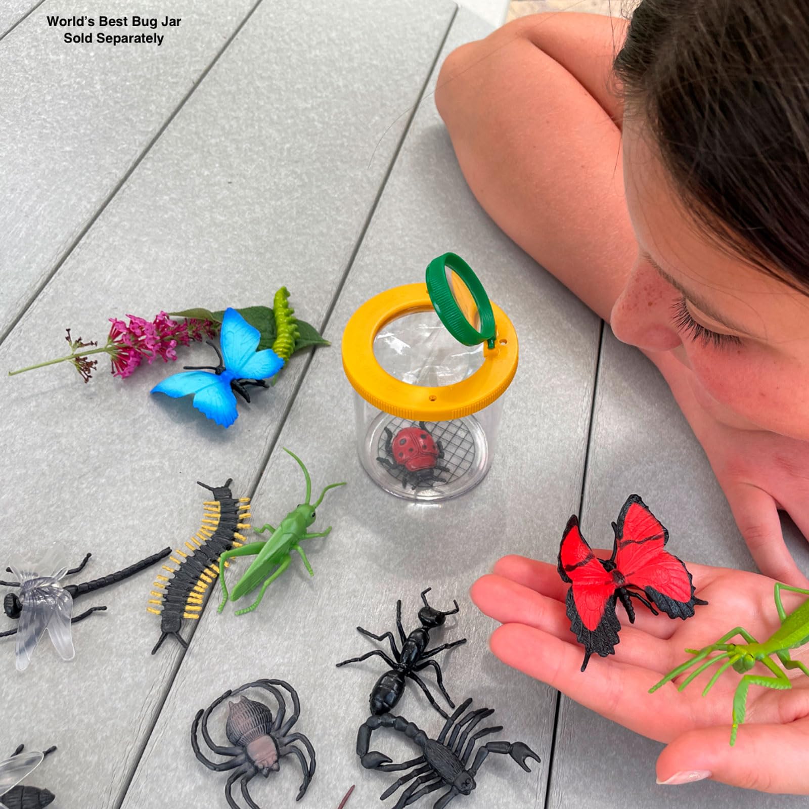 - Rich Variety: This TOOB includes 14 detailed mini figurines of various insects, such as a caterpillar, dragonfly, centipede, grasshopper, housefly, ladybug, spider, honeybee, cockroach, scorpion, praying mantis, ant, and two butterflies.